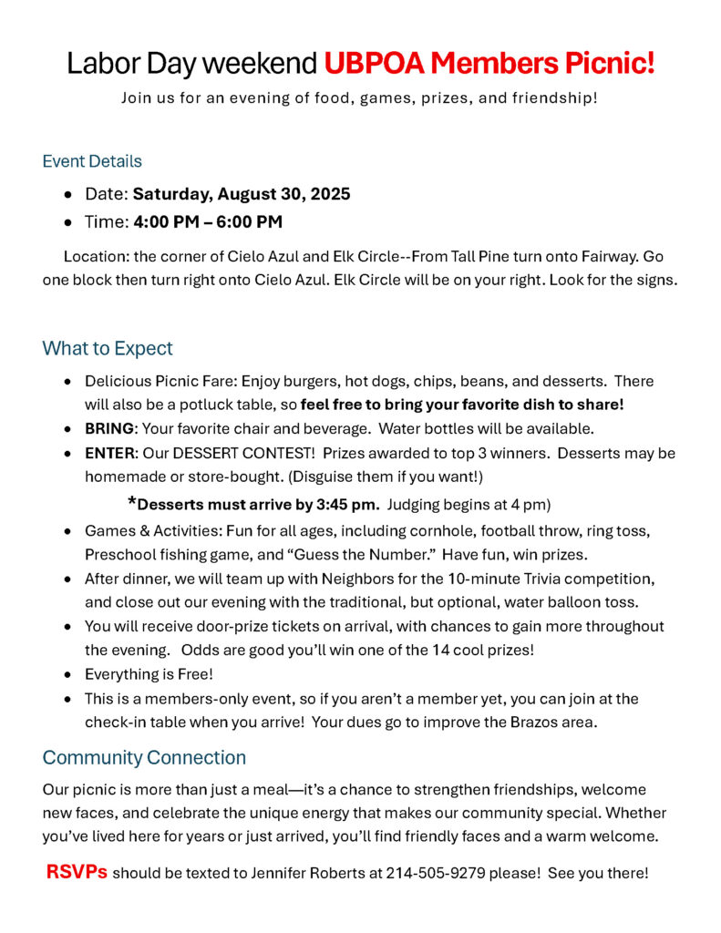 © 2026 Upper Brazos Property Owner's Association. All Rights Reserved.